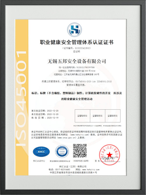 職業健康安全管理體系認證證書
