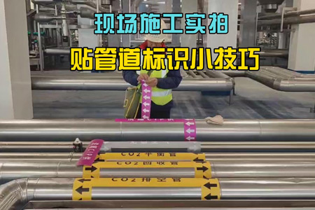 管道標識對于確保工業安全至關重要。施工前需先清理管道表面,使用軟毛刷去除塵土并用酒精清潔,確保表面干燥。接著確定標識位置,通常在管道的起點、終點及重要節點。粘貼色環時僅撕開一小部分背膠,以便于微調位置,同時減少氣泡和褶皺的產生。使用刮刀從中心向兩邊抹平,確保貼合緊密。文字標簽與箭頭指示應準確貼于色環旁,標明介質名稱和流向。這樣的做法不僅便于安裝,也方便日后維護和更換。